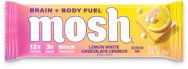 • MOSH Lemon White Chocolate Crunch protein bar featuring brain nutrients and ingredients