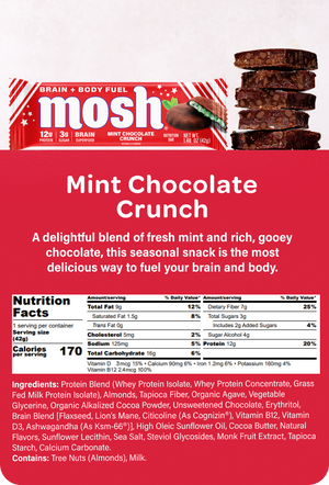 *2 MOSH bars contain 250mg of Cognizin®, which helps support focus, attention, and overall brain and cognitive health.